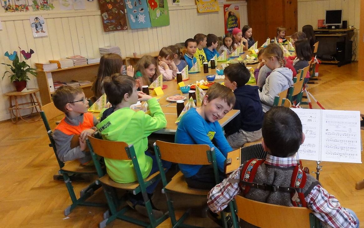 Am Freitag vor den Osterferien gab es eine gemeinsame Osterjause für die 1. und 4. Klasse. Die Kinder der 4. Klasse organisierten die Jause und bereiteten alles vor (sogar inkl. Tischkärtchen) und luden die Kinder der 1. Klasse dazu ein. In der 1. Klasse wurde eine prächtige "Ostertafel" vorbereitet und nachdem Thomas Sollböck einige Lieder auf der "Steirischen" zum Besten gegeben hatte und Evas Geburtstag gefeiert worden war, genossen alle die schmackhafte Osterjause. Herzlichen Dank Frau Janz und Frau Lechner sowie allen Kindern die mitgeholfen haben, besonders an Stefan Enöckl und Lea Wentner für das gute Brot.
