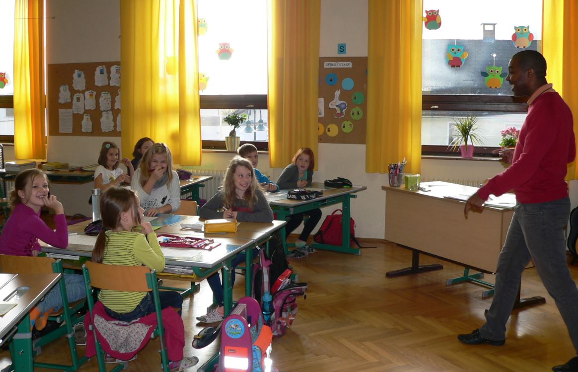 In der Woche vom 27. - 30.10.2014 ist unser Nativespeaker Jerome Small bei uns an der Schule. Er bringt den Kindern verschiedene Themenbereiche näher ("That's me", "My brothers and sisters", "At the zoo",...), wobei der Spaß nie zu kurz kommt. Mit welcher Freude die Kinder am Unterricht teilnehmen, ist auf den Fotos zu sehen.