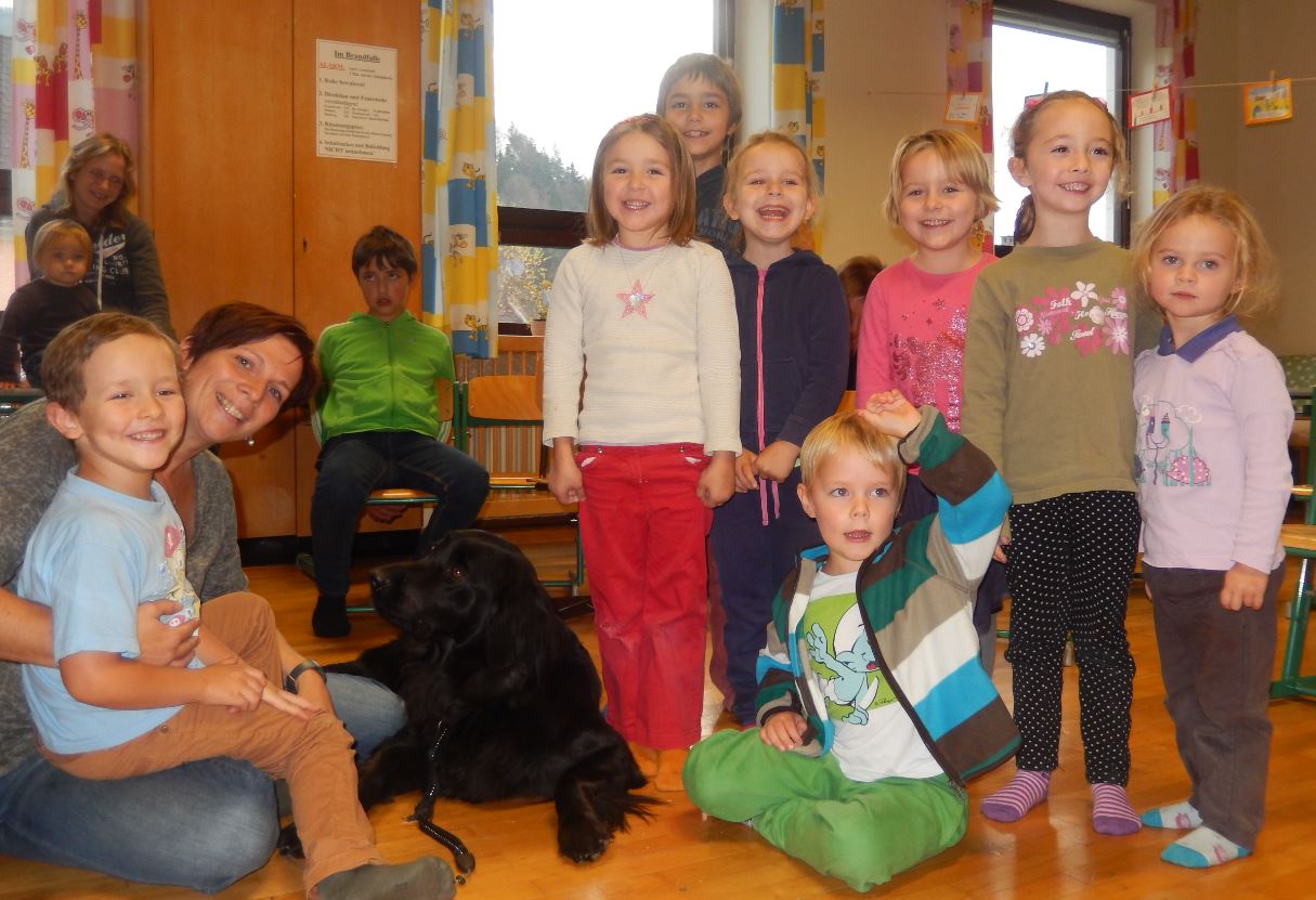 Im Rahmen der tiergestützten Pädagogik besuchen Enya und mich 8-10 Kindergarten Kinder gemeinsam mit ihren Eltern bzw. Großeltern und älteren Geschwistern an einem Nachmittag einmal im Monat in einem zur Verfügung gestellten Raum der Volksschule Lunz am See.