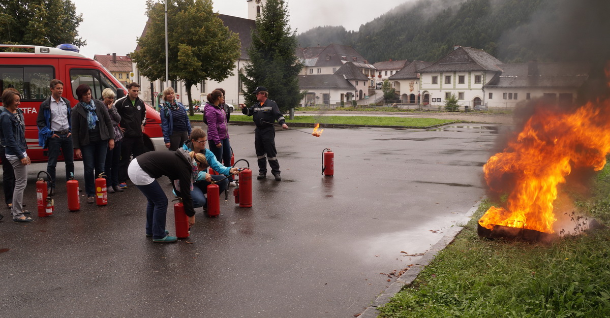 Am 3.9.2014 nahmen die Lehrerinnen und Lehrer der VS und NMS an einer Feuerlöscher-Einschulung teil. Feuerwehrkommandant Johann Simetzberger und der Leiter des Verwaltungsdienstes Herr Martin Böck erklärten uns die verschiedenen Feuerlöscher-Arten und den richtigen Umgang damit.