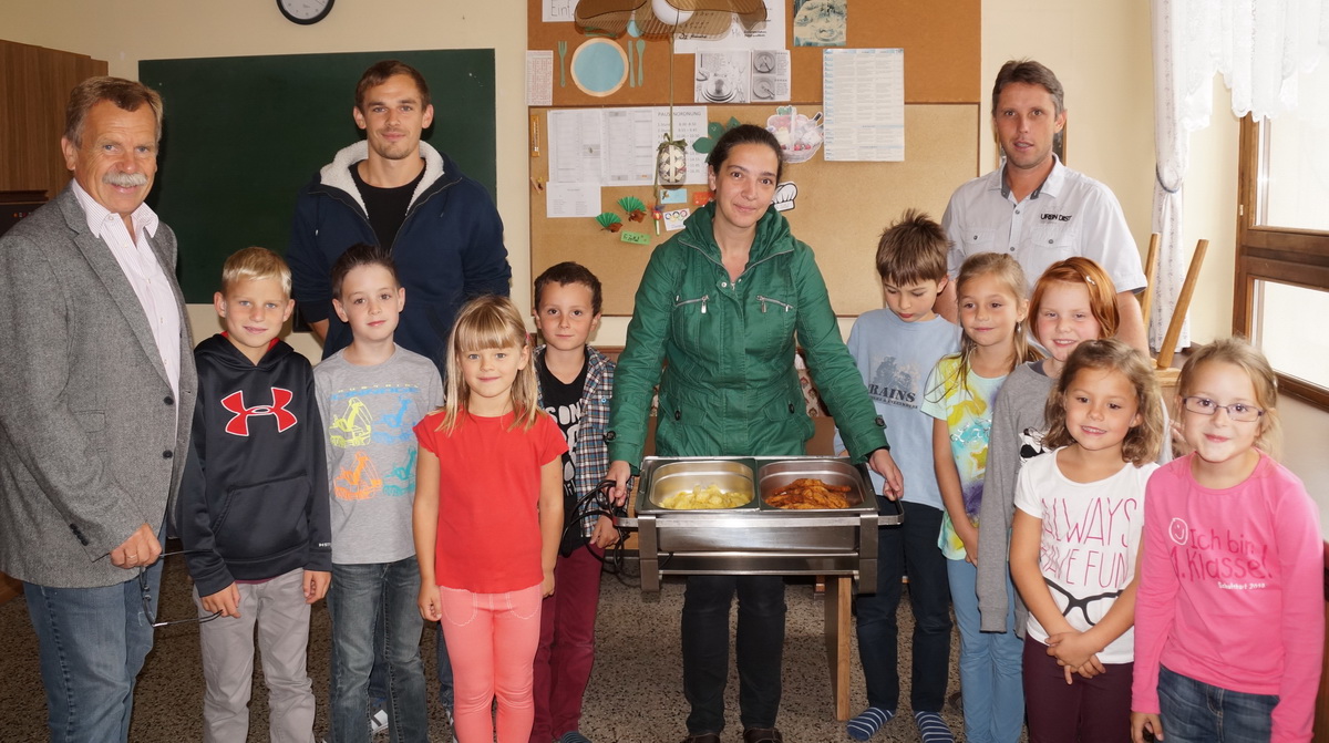 Am 3.9.2014 gab es im Rahmen der Nachmittagsbetreuung erstmals ein köstliches, von Frau Tina Neumann (Gasthaus zur Paula) zubereitetes Mittagessen. Die Kinder ließen sich die Frittatensuppe und das Schnitzerl mit Kartoffeln schmecken.