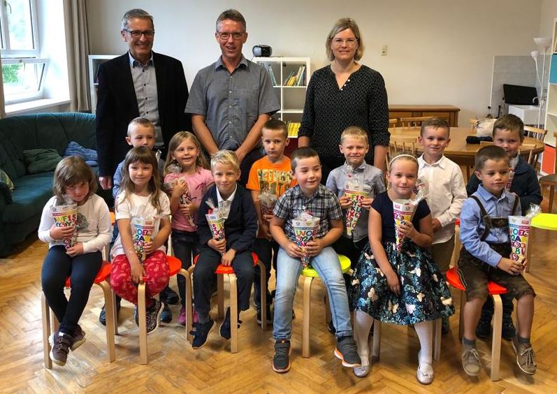 Herzlich willkommen hieß Klassenlehrerin Frau Helmel heute ihre 12 Schülerinnen und Schüler am ersten Schultag bei uns an der Volksschule. Nach einem gemeinsamen Kirchgang stimmte Frau Helmel ihre Klasse auf das Schuljahr ein, während die Eltern im Leseraum einige Informationen von Herrn Direktor Holzgruber erhielten.