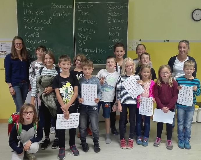 In der ersten Einheit der unverbindlichen Übung Verantwortung mit Frau Jagersberger Katja und Frau Jagersberger Nicole besuchte uns Frau Patricia Schager, welche sich schon sehr lange für Gebärdensprache interessiert. In einer sehr lehrreichen und interessanten Einheit erklärte Frau Schager den Kindern, wofür es die Gebärdensprache überhaupt gibt. Herzlichen Dank an Frau Schager für die Bereitschaft, unsere "Verantwortungskinder" in die Welt der Gebärdensprache einzuführen. |