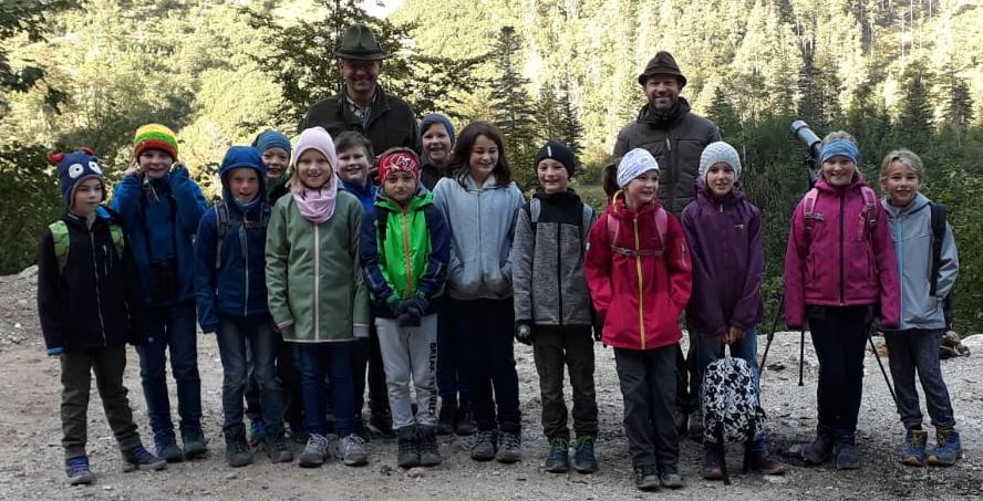 Am Freitag, den 20.9.2019, folgte die 3a Klasse (begleitet von Klassenlehrerin Frau Gaßner) der Einladung von Ferdinand Hochauer und Bernd und Annette Puritscher zu einem Wald- und Wildtag in der Forstverwaltung Seehof (Kupelwieser). In der Pause stärkten sich die Buben und Mädchen mit Tee, Säften, leckeren Aufstrichbroten, Obst, Gemüse und Mehlspeisen, welche von Frau Puritscher und Frau Hochauer zubereitet worden waren. Anschließend erhielten die Kinder kleine Blumentöpfe, in die sie Baumsäumlinge einsetzen und mit nach Hause nehmen durften. Zum Abschluss des lehrreichen Vormittags konnten alle noch einen Blick in die Kühlkammer werfen, wo ein am Vortag erlegter Hirsch begutachtet werden konnte. Ein herzliches Dankeschön an Bernd Puritscher und Ferdinand Hochauer für die Einladung und die lehrreiche Führung sowie Annette Puritscher und Monika Hochauer für die gute Bewirtung! |