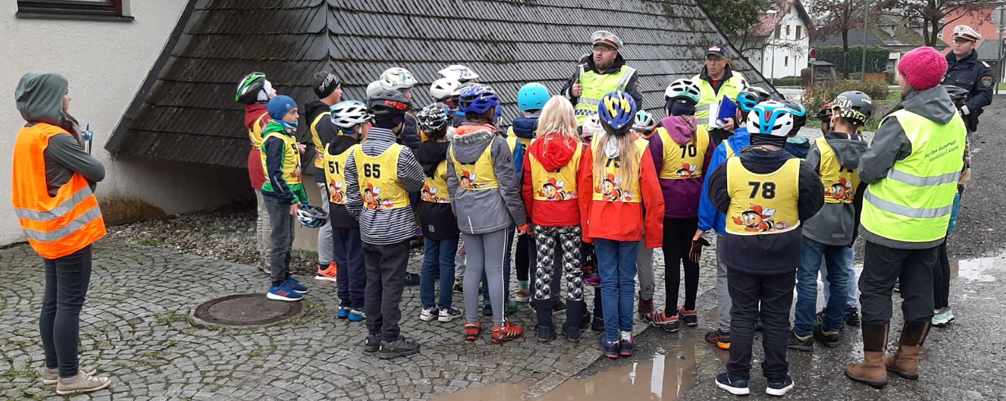 Am 12.10.2020 fand die praktische Radfahrprüfung für die Schülerinnen und Schüler der beiden 4. Klassen unter recht widrigen Umständen (Regen, Kälte) statt. Die Klassenlehrerinnen Frau Pechhacker und Frau Haider hatten ihre Klassen im Rahmen der Verkehrserziehung im Vorfeld schon hervorragend vorbereitet. Herr G.Insp. Werner Fohringer von der Polizeiinspektion Lunz führte die Überprüfung unterstützt von Frau Sattler von der RAIBA Lunz, unserem Schulwart Herrn Simetzberger und Herrn Direktor Holzgruber durch und gab den Kindern noch einige wichtige Informationen und Tipps für die sichere Teilnahme im Straßenverkehr mit auf den Weg.
