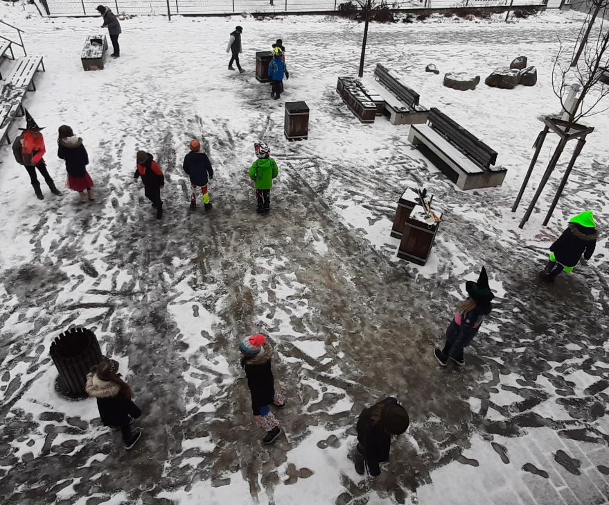 Der Schulhof wurde in der "Frischluftpause" genutzt, um ein wenig "Faschingsfeeling aufkommen zu lassen:
