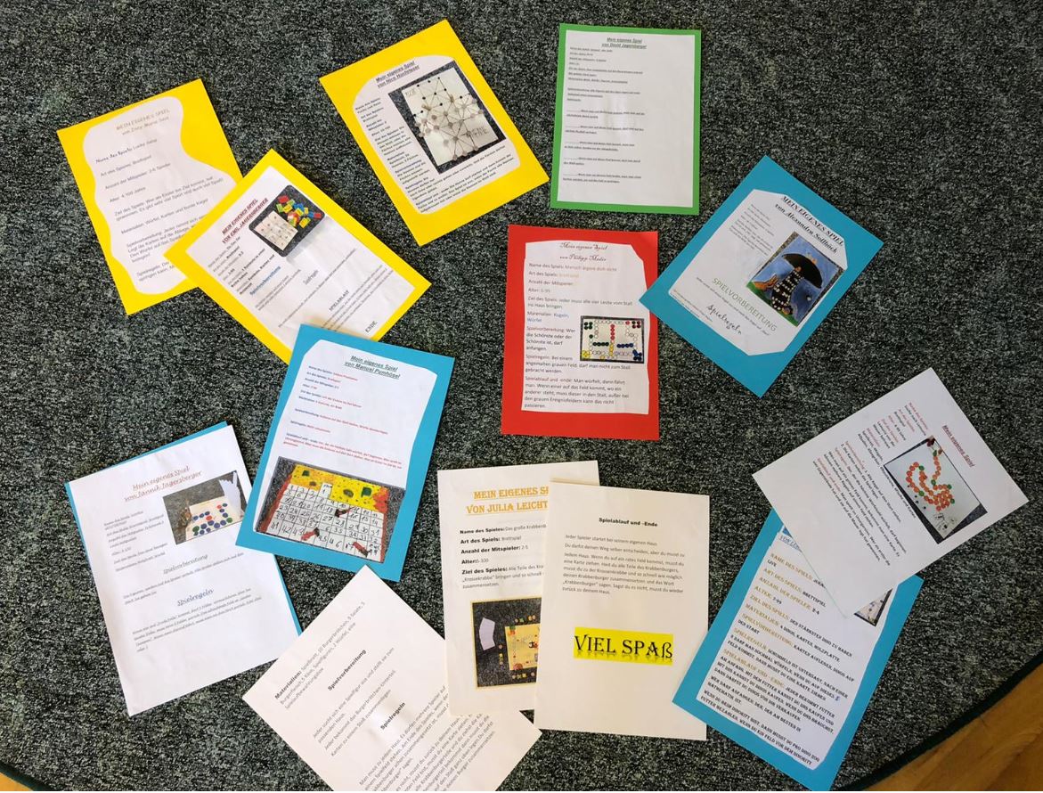 In unserer 4a-Klasse wurde das Deutsch-Thema "Eine Spielanleitung schreiben" mit dem Werk- und EDV-Unterricht verbunden und fächerübergreifend beleuchtet. Die Kinder durften selbstständig ein eigenes Spiel entwerfen oder ein bestehendes nachbauen. Sie nutzten dazu die verschiedensten Materialien und es entstanden 14 ganz unterschiedliche kreative Spiele! Danach wurde die passende Spielanleitung im Deutschunterricht geschrieben und unser Herr Direktor half ihnen, die Anleitungen am Computer in "Word" in Form zu bringen und das Bild einzufügen.