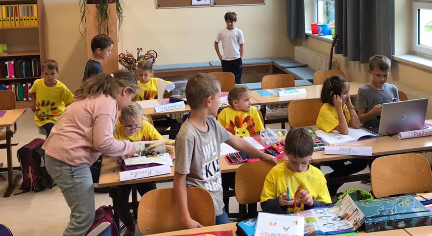 Am Dienstag, den 14.9.2022, durften die Kinder der 3. Klasse in die Rolle des Lehrers schlüpfen und den jüngsten Schulkindern beim ersten Buchstabentag behilflich sein.