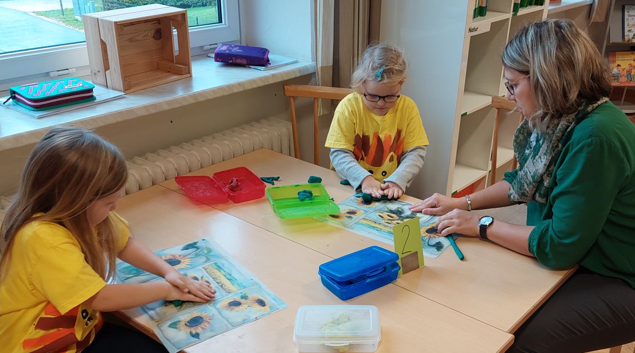 Viel los bei den einzelnen Statioenen war auch wieder beim Buchstabentag aA am 27.9.2022. Frau Lechner bereitete wieder sehr abwechslungsreiche Stationen vor. Da die Kinder diese Art von Unterricht schon aus dem Stationenbetrieb im Kindergarten und unserer Zusammenarbeit in den Nahtstellenstunden kennen, arbeiten sie schon sehr fleißig und selbstständig.