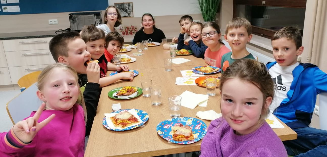 Vom 23. auf 24.2.2023 veranstaltete Frau Jagersberger für ihre 3. Klasse eine Lesenacht in der Schule. Nach dem Zusammenkommen wurden zuerst einmal gemeinsam Geschichten gelesen, bevor in der Schulküche leckere Pizzen zubereitet wurden.