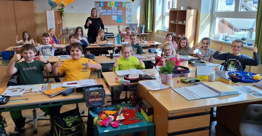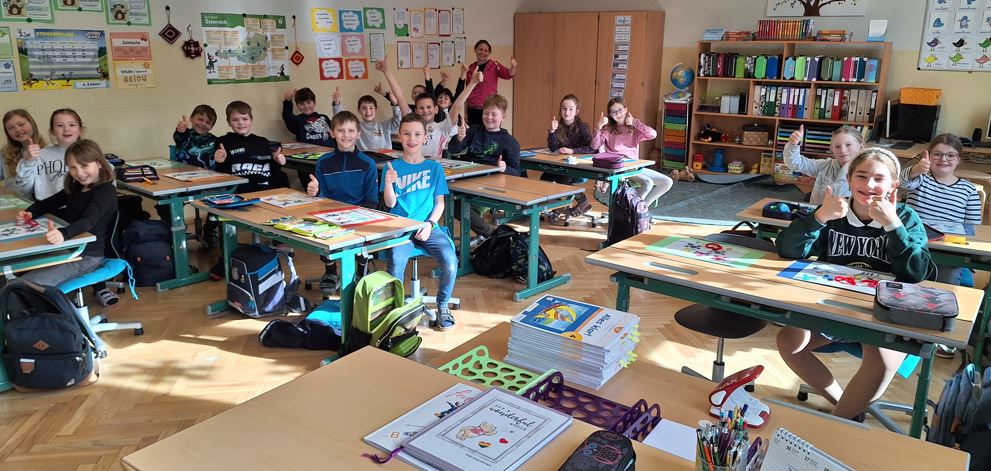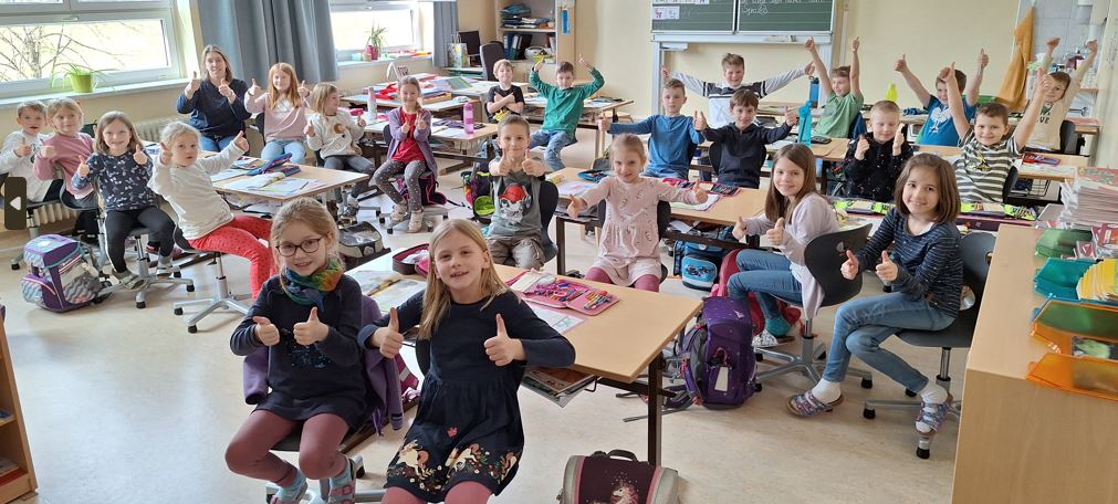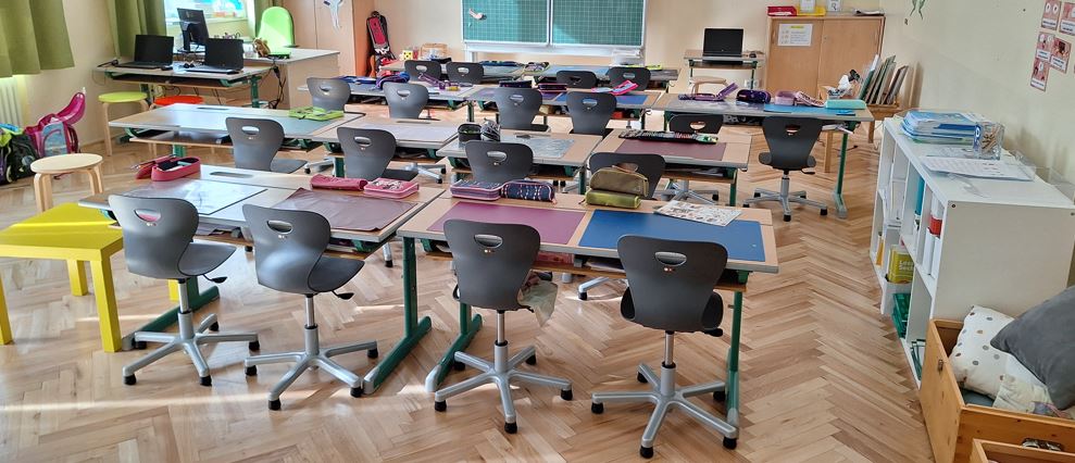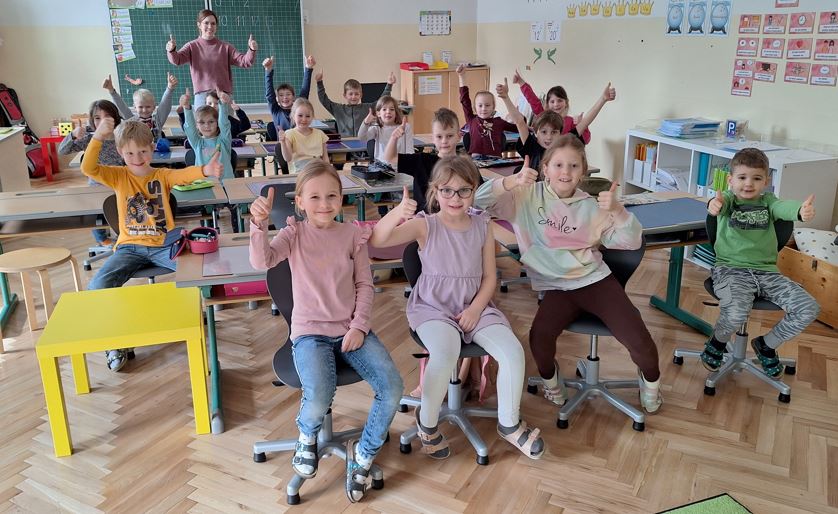77 Kinder und alle Lehrkräfte freuen sich sehr über die neuen Schulsessel! Dank unseres Schulerhalters, der Gemeinde, durften wir für alle Klassen neue Sessel für die Kinder anschaffen. 1. Klasse
