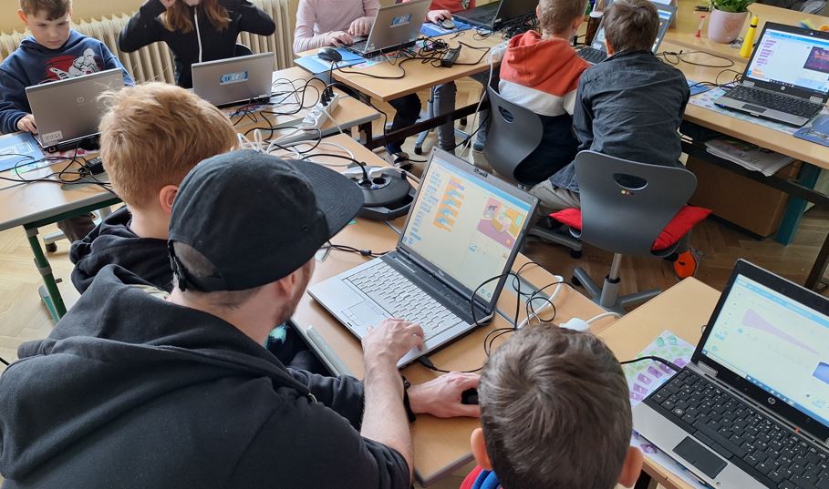 Am 6.3.2024 veranstalteten wir für die Kinder der 3. und 4. Klasse einen Scratch-Workshop. Scratch ist eine erstmals 2007 veröffentlichte bildungsorientierte visuelle Programmiersprache für Kinder und Jugendliche.