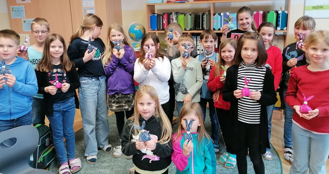 Stolz präsentieren die Kinder ihre Osterhasen.