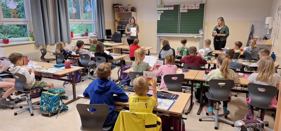 ... und danach wird das Gelernte digital vertieft. Dabei mussten bestimmte Figuren in möglichst wenig Versuchen mit den 7 Kärtchen richtig "bestückt" werden. Im Anschluss hatte Frau Janz noch einen online-Feedback-Fragebogen für die Kinder vorbereitet. |