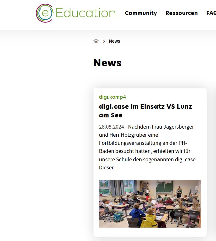Die hervorragende Arbeit des Lehrerinnen-Teams auch im Bereich eEducation wurde mit der Veröffentlichung eines Artikels auf der Startseite der österreichweiten eEducation-Plattform gewürdigt. Danke an dieser Stelle an mein VS-Team für die wirklich tolle Arbeit mit den Kindern in allen Bereichen! |