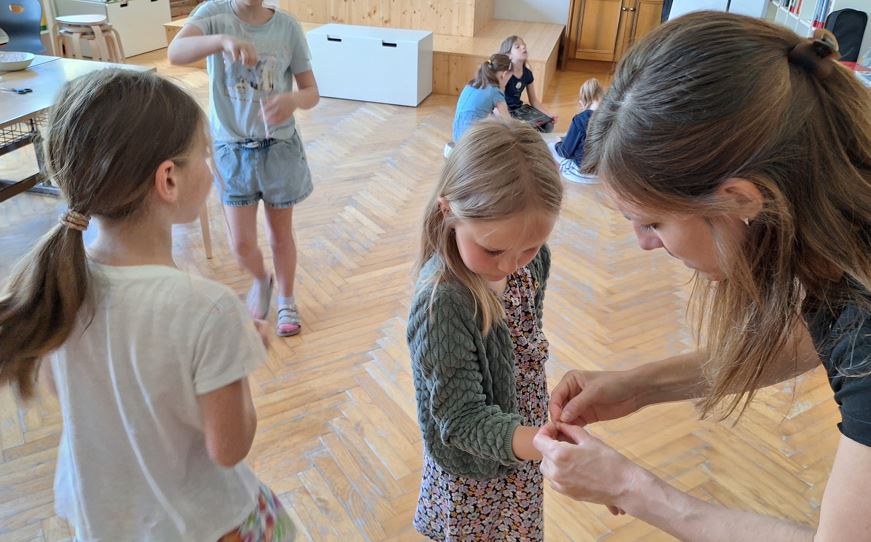 Frau Enöckl erklärt den Kindern eine der Stationen.