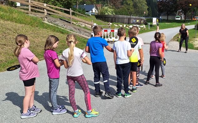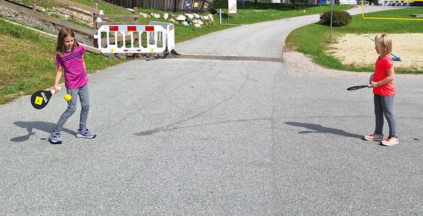 Den schönen Herbstnachmittag am 19.9. nutzte Frau Janz mit den Kindern in der unverbindlichen Übung BSP auf der Schulwiese und dem Parkplatz hinter der Schule. Nach einer kurzen Theorie-Einheit in der Klasse und dem Aufwärmprogramm war das Hauptthema dieses Nachmittags "Street Racket".
