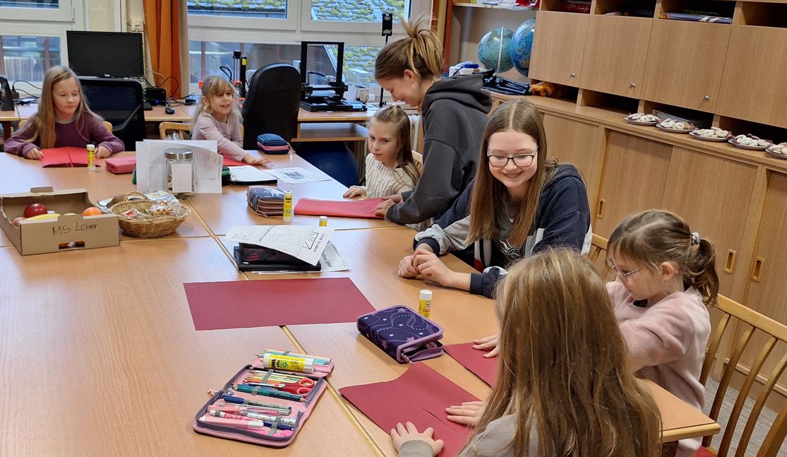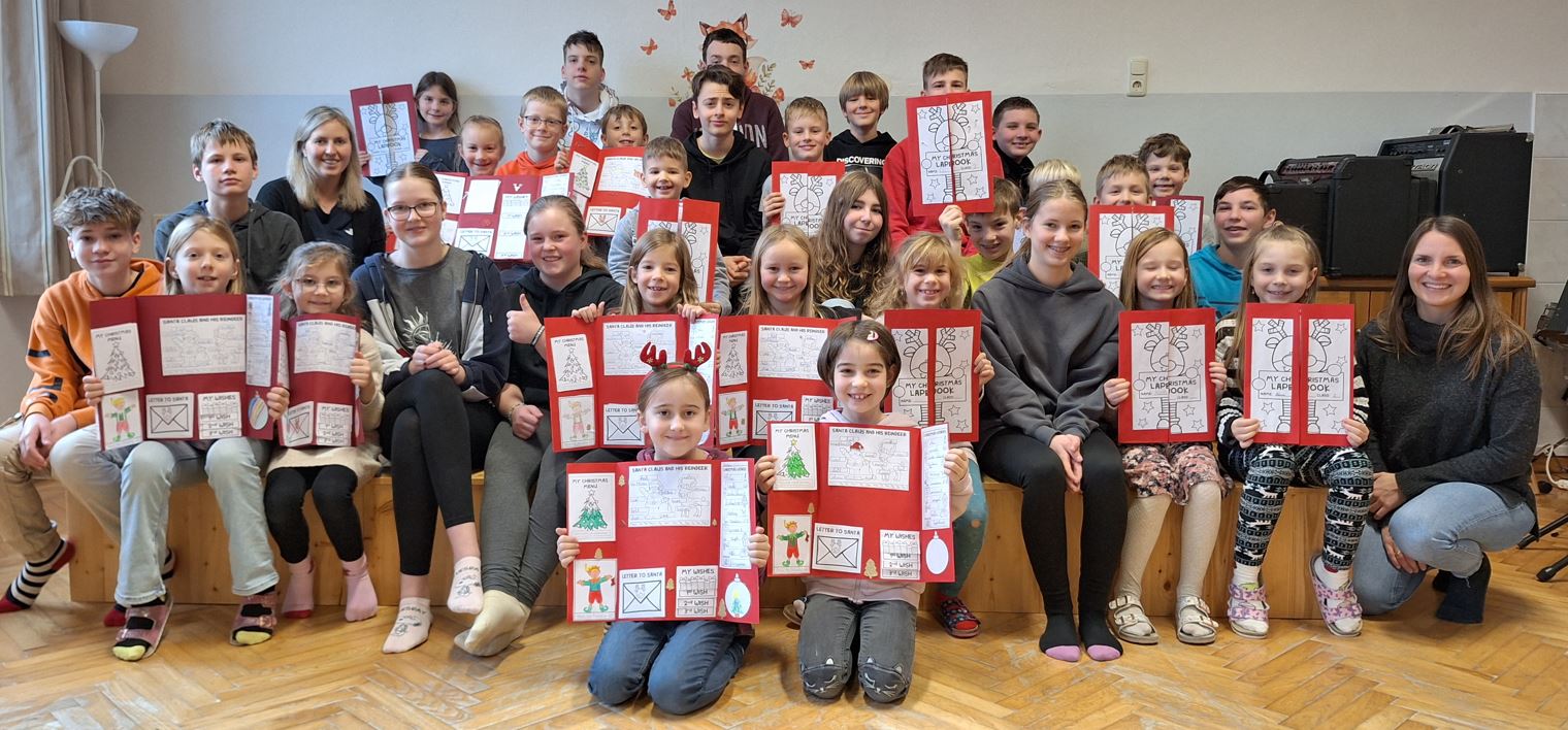 Am 16.12.2024 besuchte die 2. Klasse der VS mit ihrer Englischlehrerin Frau Janz die 4b der Mittelschule. Gemeinsam mit ihrer Klasse hatte Frau Reiter ein tolles weihnachtliches Programm für die VS-Kinder vorbereitet. In Gruppen eingeteilt machten sich die Schülerinnen und Schüler gleich ans Werk, um ein "Christmas-Lapbook" zu erstellen.