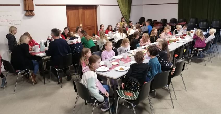 Im Anschluss hatten einige fleißige Helferleins (siehe Foto) schon ein leckeres Frühstück im Pfarrheim vorbereitet. Wir ließen uns das tolle Frühstück gemeinsam schmecken.