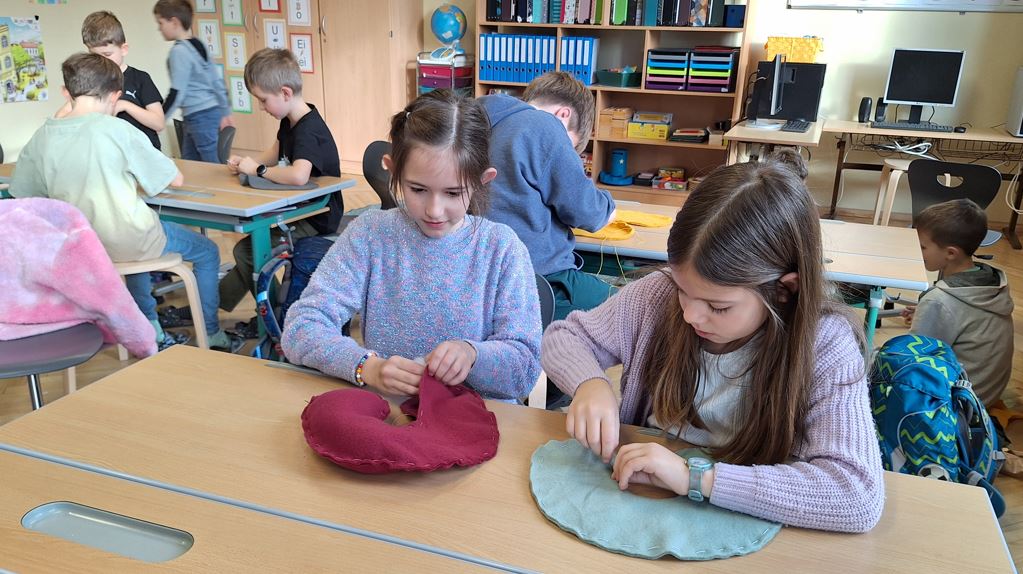 Am 9.1. wurden in der unverbindlichen Übung Nackenkissen selbst genäht und mit Füllwatte befüllt.