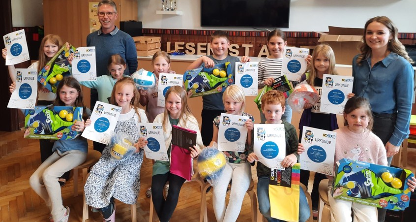 Gemeinsam versammelten sich alle Klassen mit ihren Klassenlehrerinnen im Lesraum, wo die stolzen Preisträgerinnen und Preisträger (siehe Foto) geehrt wurden.