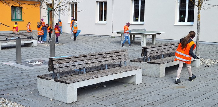 In zwei Gruppen aufgeteilt, machten sich unsere Schülerinnen und Schüler bestens ausgerüstet mit Handschuhen, Warnwesten, Müllzangen und Müllsäcken und begleitet von ihren Lehrerinnen auf verschiedenen Routen auf den Weg. Die Kinder waren sehr erstaunt darüber, wie viele Menschen Müll einfach achtlos wegwerfen und so die Umwelt verschmutzen. |