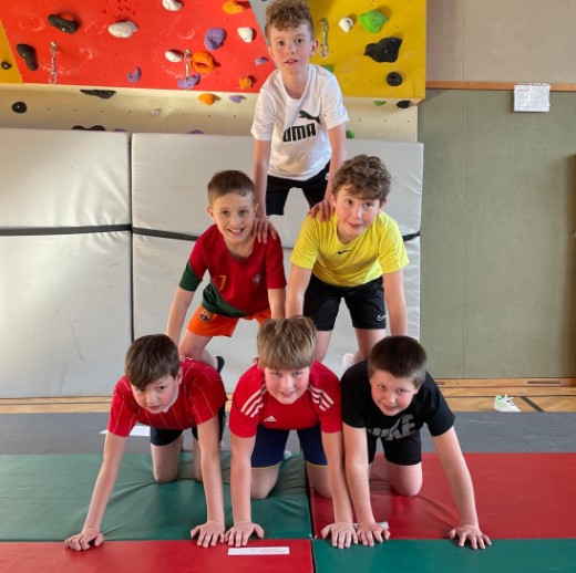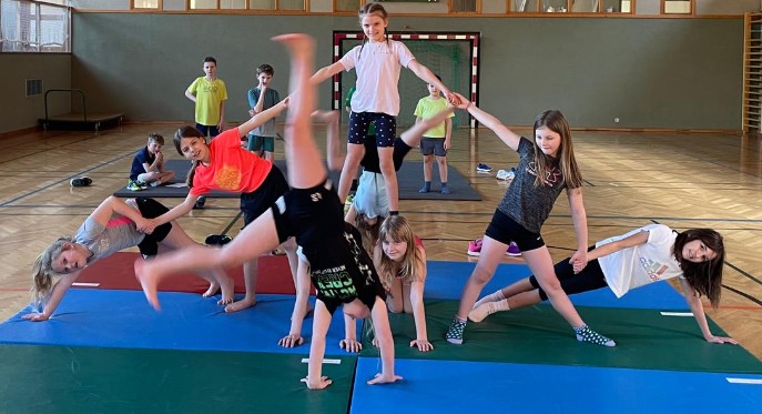 Die Kinder durften nach einer allgemeinen Einweisung verschiedenste Akrobatikübungen ausprobieren. |