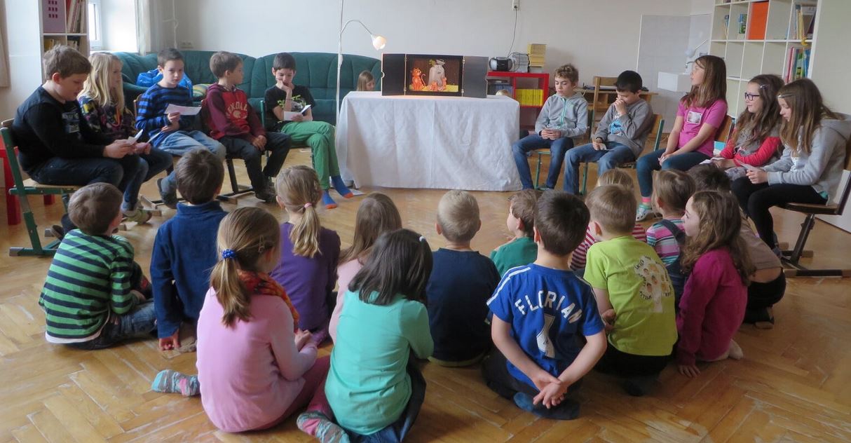 Am 17.3. stand wieder ein Lesetag auf dem Programm. Dieses Mal besuchten die Vorschulkinder die 3. Klasse im Leseraum der Volksschule. Frau Helmel hat mit ihren Schülern und Schülerinnen eine Klanggeschichte von Quaki dem Frosch, der auf der Suche nach den fetten Fliegen ist, vorbereitet. Die VS-Kinder spielten den Kindergartenkindern die Geschichte zuerst vor, danach wurde sie gemeinsam (mit Gesten und Geräuschen) wiederholt und zum Abschluss wurde noch gemeinsam ein Lied gesungen.