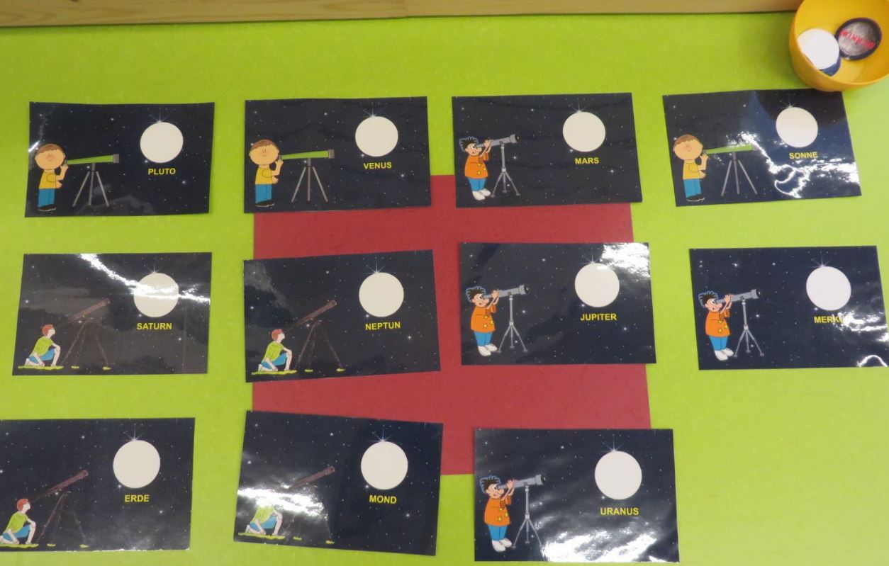 Am 1. März setzten wir unsere "Raumfahrerausbildung" fort. Dieses Mal besuchten wir den Planeten Jupiter. Wie immer wurden zuerst im Sitzkreis die wichtigsten Eigenschaften des Planeten besprochen, bevor die Kinder wieder paarweise viele verschiedene Stationen mit den unterschiedlichsten Aufgaben durcharbeiten konnten.