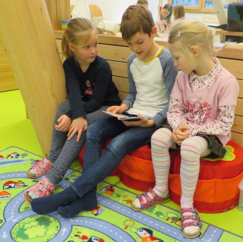 Am 10.3. ging Frau Helmel mit ihrer Klasse in den Kindergarten, um die Vorschulkinder zu besuchen. Nach einem gemeinsamen Lied legten die Schulkinder ihre mitgebrachten Bücher auf. Die Vorschulkinder durften sich ein Buch aussuchen, welches ihnen im Anschluss vorgelesen wurde. Die Kinder der 2. Klasse hatten für ihren "Auftritt" als Vorleser fleißig geübt, weshalb sie sich aufmerksamer Zuhörer sicher sein konnten (siehe Foto). Nach dem gemeinsamen Spielen in den KIGA-Gruppen wurde der Lesevormittag mit einem Besuch in der Bücherei abgerundet. Fotoalbum: |