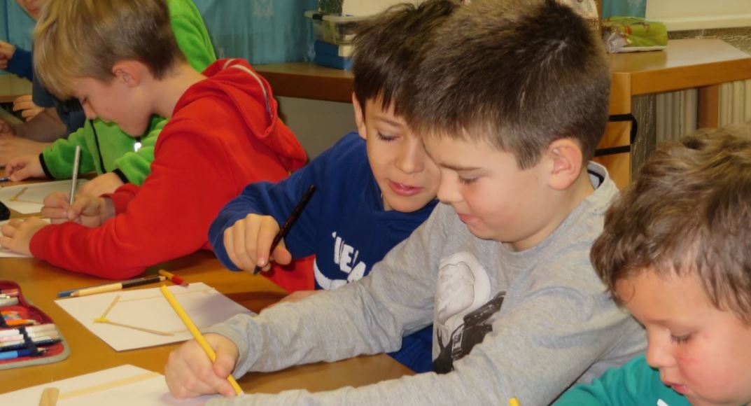 Nach dem Vorlesen der Geschichte wurde noch gemeinsam gesungen und die Kinder durften in Paaren bzw. Gruppen ein Bild von der Krippe gestalten.