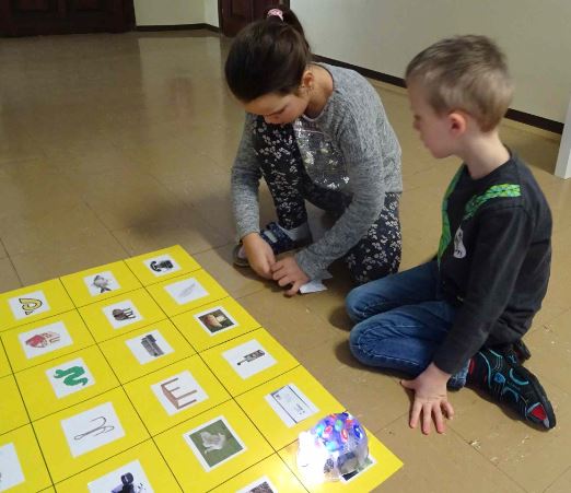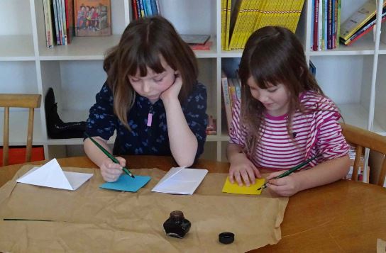 Beim Schreiben der Briefe mit "echter" Tinte ... ... und beim Finden der richtigen "Wort-Bild-Paare" mit den Bee-Bots.
