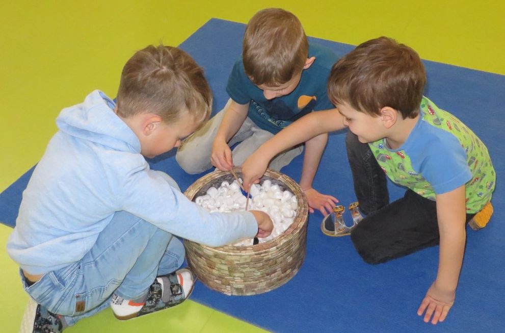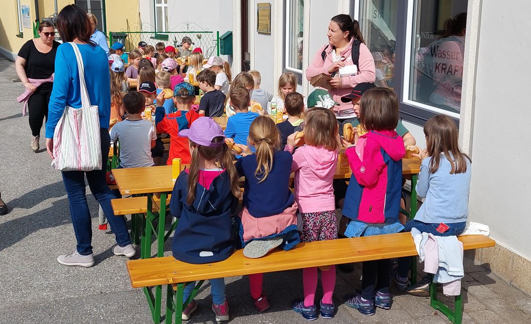 Beim drittenTreffen der Kindergartenkinder mit den Schüler/innen der 1. Klasse VS war das Element Wasser an der Reihe.