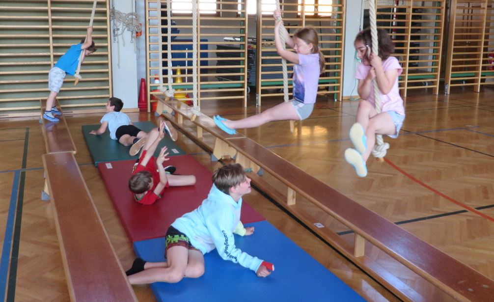 Frau Janz lud am 1.6.2023 die Vorschulkinder des Kindergartens zu einer gemeinsamen Turnstunde mit unserer 4. Klasse ein.