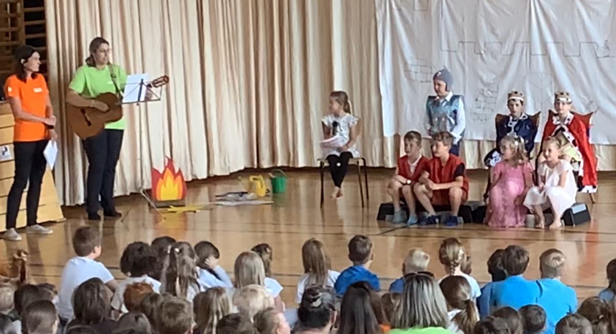 Am 16.6.2023 war es endlich soweit - der große Auftritt der Vorschulkinder des Kindergartens und der 1. Klasse der Volksschule stand auf dem Programm. Zahlreiche Besucher verfolgten gebannt unser Elemente-Theater, welches von den Pädagoginnen Frau Holzgruber, Frau Lechner, Frau Längauer und Frau Neusiedler mit den Kindern in zahlreichen Nahtstellenbegegnungen einstudiert wurde.