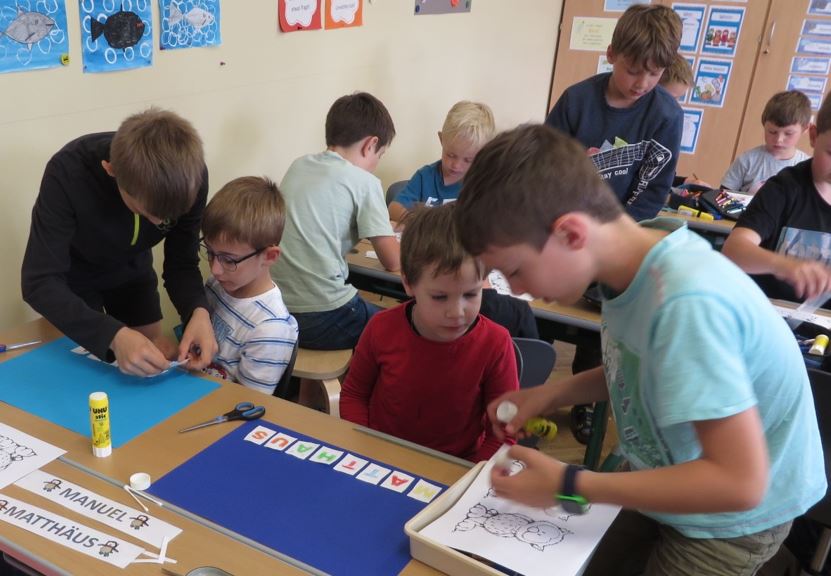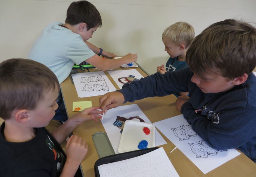 Auf dem Programm stand eine gemeinsame Basteleinheit, in der die KIGA-Kinder ihre Tischunterlagen sowie ihre Batelschachteln für die Schule gestalten durften.