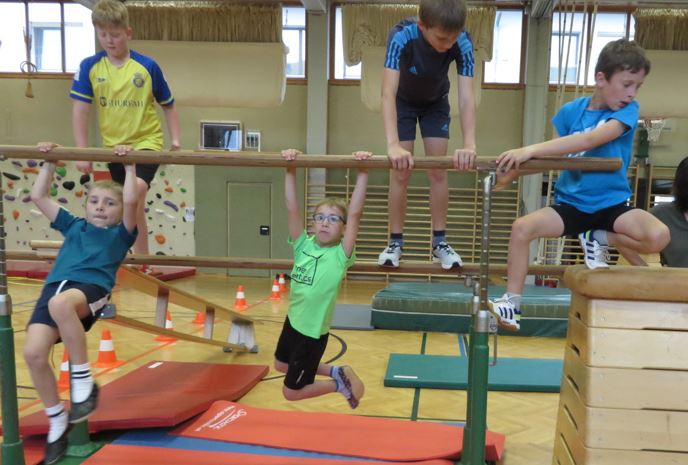 Nach einer gemeinsamen Jausenpause in der 4. Klasse stand noch eine Turnstunde auf dem Programm, welche Frau Janz leitete.