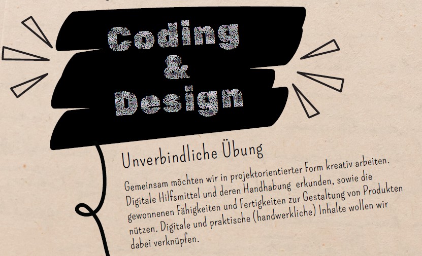 Gemeinsam wird in dieser UVÜ in projektorientierter Form kreativ gearbeitet sowie digitale Hilfsmittel und deren Handhabung erkundet und die gewonnenen Fähigkeiten und Fertigkeiten zur Gestaltung von Produkten genützt. Digitale und praktische (handwerkliche) Inhalte werden dabei verknüpft. Lerninhalte: