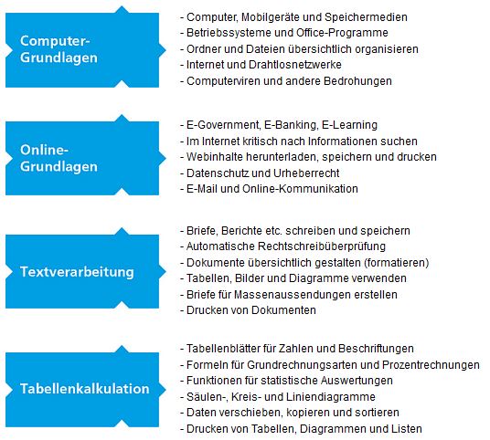 In dieser UVÜ bereiten wir unsere Schülerinnen und Schüler auf die Ablegung der ECDL-Prüfung in den folgenden Bereichen vor.