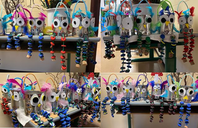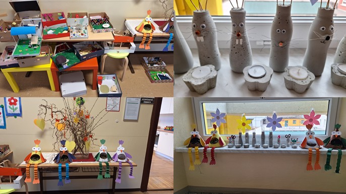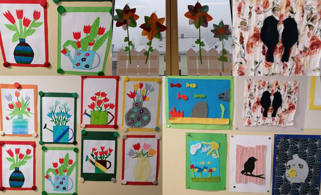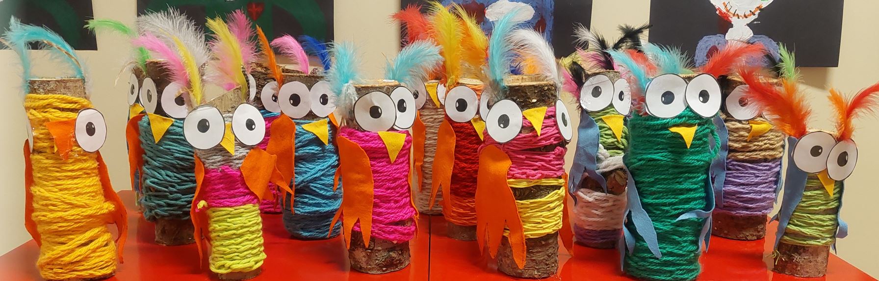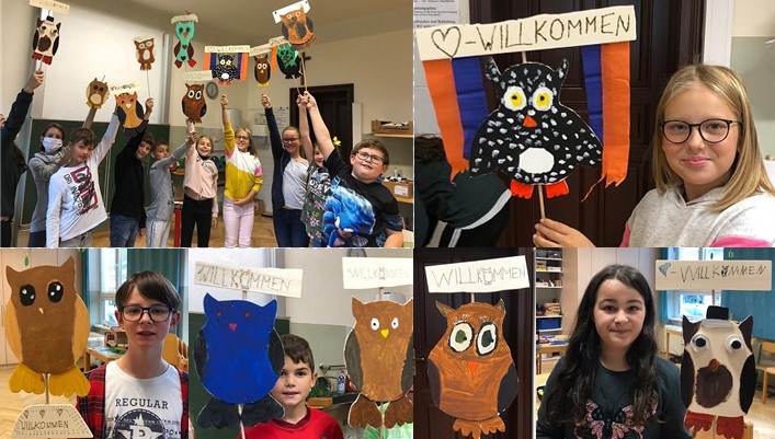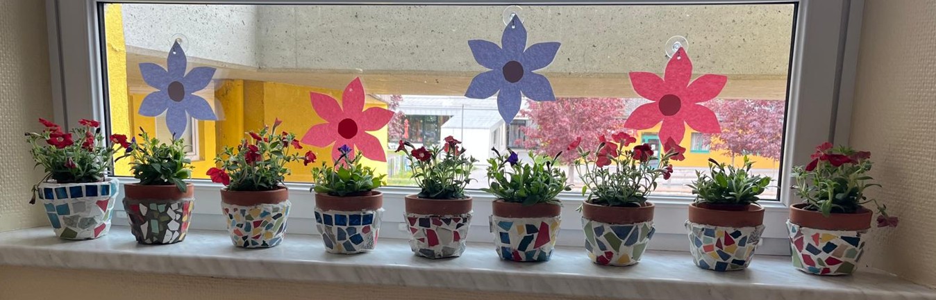 Eulen als Fensterschmuck Blumen als Klassendeko